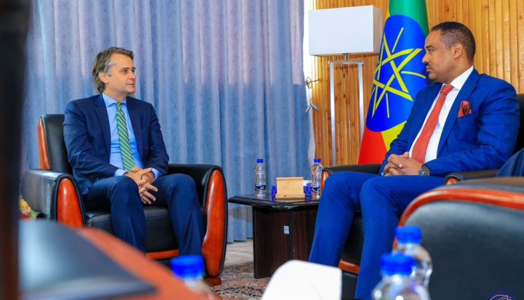Addis Ababa, July 2, 2024 (FBC) – Ethiopia’s State Minister for Foreign Affairs, Ambassador Mesganu Arga, met with Mr. Heiko Nitzschke, Special Envoy for the Horn of Africa of the Federal Republic of Germany, today at his office.