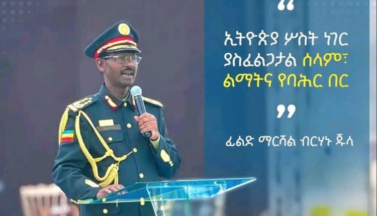 Addis Ababa, October 25, 2025 (FMC) — ENDF Chief of Staff Field Marshal Berhanu Jula reaffirmed that Ethiopia is firmly committed to securing direct access to a seaport, describing it as crucial to the nation’s sovereignty, security, and long-term survival.