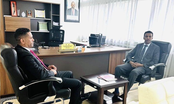 Addis Ababa, July 3, 2023 (FBC) – State Minister of Trade and Regional Integration, Kassahun Gofe, met and discussed with the newly appointed Somalia Ambassador to Ethiopia Ambassador Abdullahi warfa.