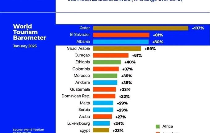 Addis Ababa, January 27, 2025 (FMC) — UN Tourism data listed Ethiopia as a standout in African tourism, with international arrivals soaring by a significant figure in 2024, surpassing pre-pandemic benchmarks.