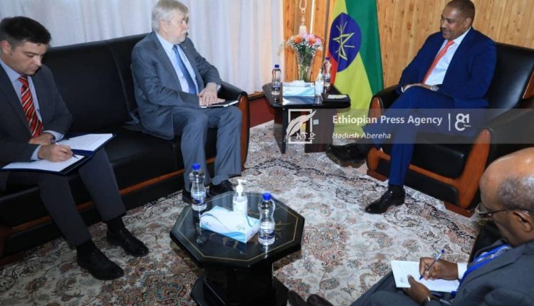 Addis Ababa, February 3, 2023 (FBC) – Russian Ambassador to Ethiopia, Yevgeny Terekhin made a courtesy call on Foreign Affairs State Minister Ambassador Mesganu Arga on Thursday.