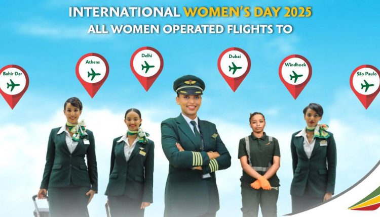 Addis Ababa, March 9, 2025 (FMC) – Ethiopian Airlines has deployed all-female crew flights to Athens, Bahir Dar, Athens, Delhi, Dubai, Windhoek, and São Paulo as part of the International Women’s Day, reinforcing its commitment to gender inclusivity.