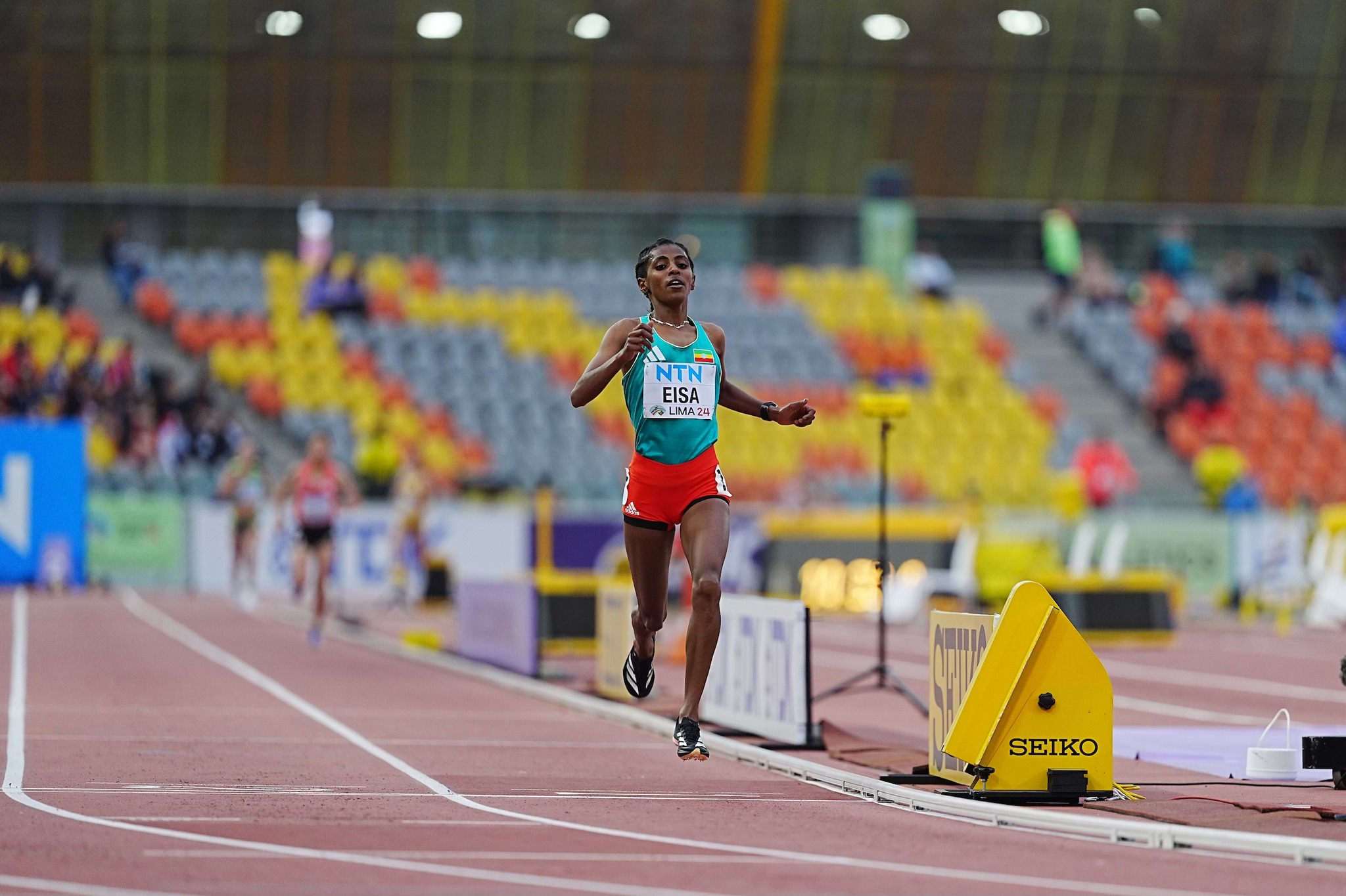 Ethiopia’s Medina Eisa runs championship record to retain world U20 5000m title in Lima