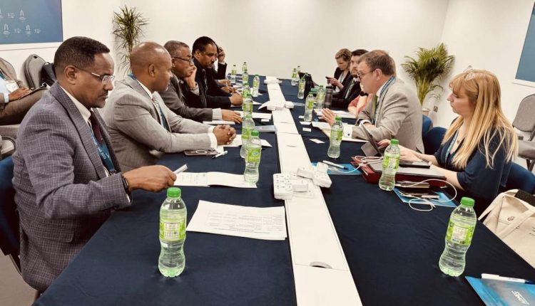 Addis Ababa, February 28, 2024 (FBC) – The Ethiopian delegation, headed by Gebremeskel Chala, the Minister of Trade and Regional Integration, engaged in discussions with delegates from the United Arab Emirates and the United Kingdom.