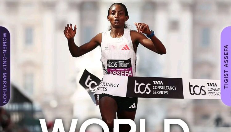 Addis Ababa, April 27, 2025 (FMC) — Ethiopia’s Tigist Assefa smashed the women-only world record by 26 seconds at the TCS London Marathon, running 2:15:50* to win the World Athletics Platinum Label road race on Sunday (27).