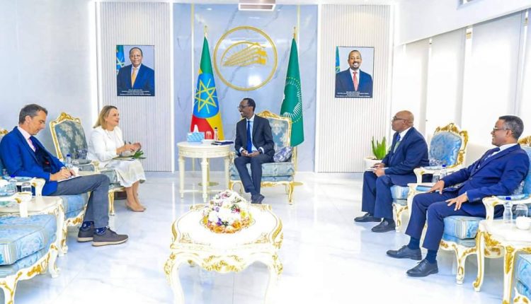 Addis Ababa, November 13, 2024 (FBC) – Ethiopia’s Minister of Foreign Affairs, Gedion Timothewos, received and held discussions with Sophie From-Emmesberger, the European Union Ambassador to Ethiopia, in his office.