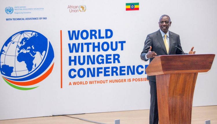 “Global collaboration is essential to effectively fight hunger and also implement policies and programmes to boost food production to feed the rising populations,” Ruto noted in his remarks at the World Without Hunger Conference which is being held in Addis Ababa.