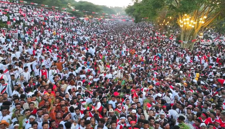 Addis Ababa, October 5, 2025 (FMC) — Tens of thousands of people gathered at Hora Harsade (Lake Harsade) in Bishoftu this morning to celebrate the 2018 E.C. (2025) Harsade Irreecha Festival in a colorful and spiritual atmosphere.