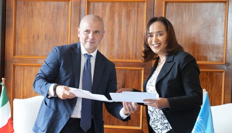 Addis Ababa, May 31, 2023 (FBC) – Italy’s Ambassador to Ethiopia, Agostino Palese and United Nations Office for Project Services (UNOPS) Ethiopia Director, Worknesh Mekonnen have signed 7.6 million Euro financing agreement to support multi-sectoral interventions aimed at improving health services in Afar and Southern Ethiopia Regions.