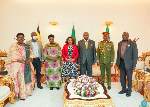 The president of Sierra Leone Julius Maada Wonie and Vice President of Uganda Jessica Rose Epel Alupo arrived in Ethiopia earlier today. Up on arrival at the Addis Ababa Bole International Airport this morning, the Sierra Leonean president and Ugandan vice president were received by Minister of Women and Social Affairs Ergogie Tesfaye and Foreign Affairs State Minister Ambassador Birtukan Ayano, and other government officials.
