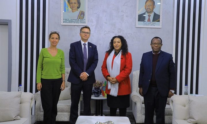 Addis Ababa, August 10, 2023 (FBC) – Minister for the Ministry of Women and Social Affairs Ergogie Tesfaye, held discussion with Paul Walters, the Development Director for the British Embassy in Ethiopia and Jennifer Stockill, Humanitarian Team Leader.