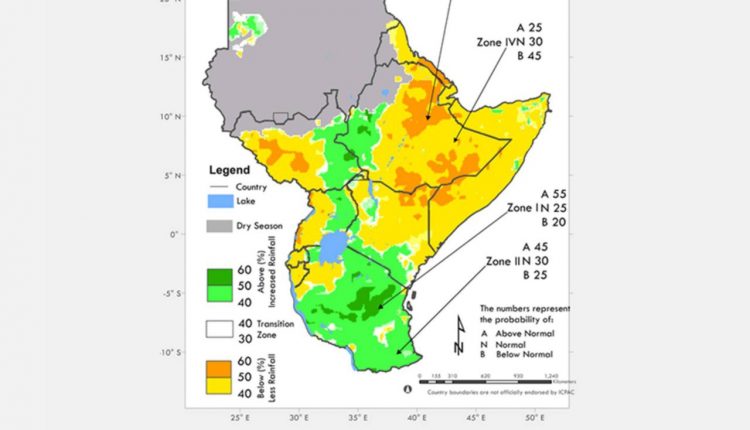 According to ICPAC, much of Somalia, eastern and northern Kenya, southern and north-eastern Ethiopia, Djibouti, coastal Eritrea, western South Sudan, southern and western Uganda, Rwanda, Burundi, and north-western Tanzania are expected to receive below-average rainfall.