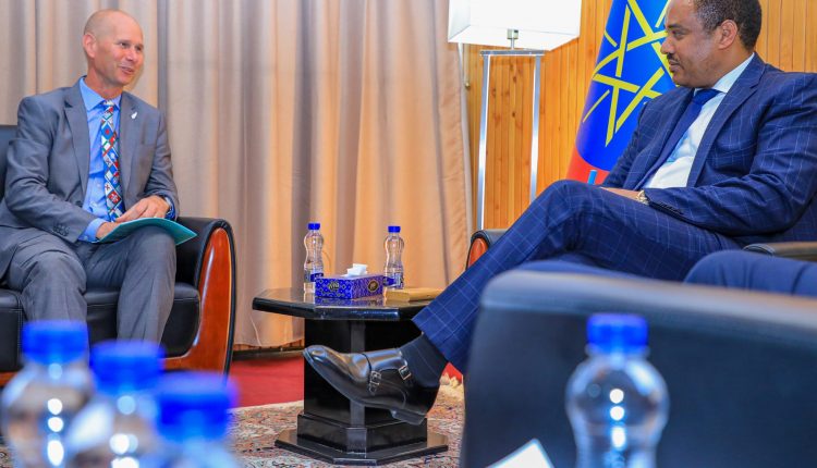 Addis Ababa, February 8, 2024 (FBC) – Ambassador Mesganu Arga, State Minister of Foreign Affairs, received and discussed with Zealand’s Ambassador to Ethiopia Michael Upton at his office today.