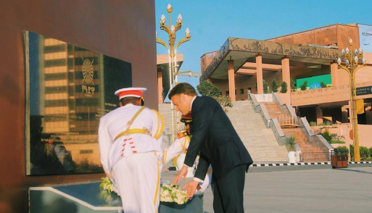 In a touching tribute, he laid a wreath at the base of the Adwa Victory Memorial Statue, commemorating the heroes who lost their lives in the historic Battle of Adwa.