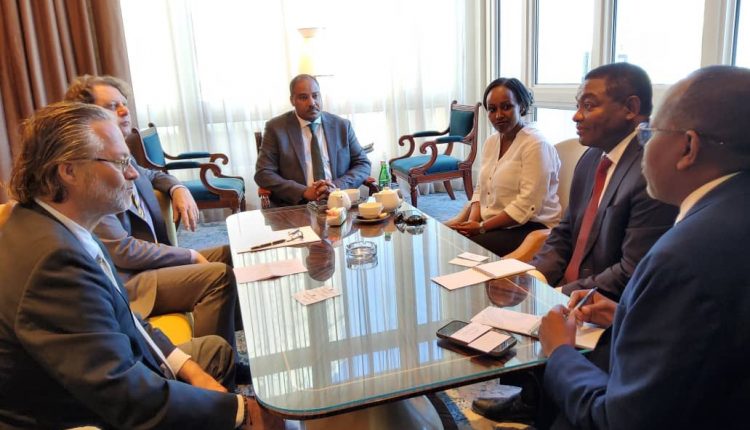 Addis Ababa, March 4, 2023 (FBC) – State Minister of the Ministry of Foreign Affairs of Ethiopia, Mesganu Arga, along with Fitsum Asefa, Minister of Planning and Development, held a business meeting with the co-founder of a Hungarian-based international firm, Equilibrium Capital, Peter Nagy, yesterday in Doha, Qatar.