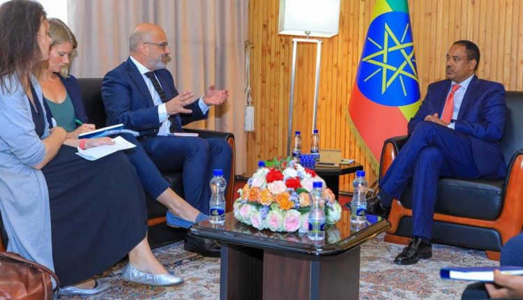Addis Ababa, May 8, 2024 (FBC) – State Minister Ambassador Mesganu Arga met at his office today Mr. Robert Piper, UN Secretary-General’s Special Adviser on Solutions to Internal Displacement.