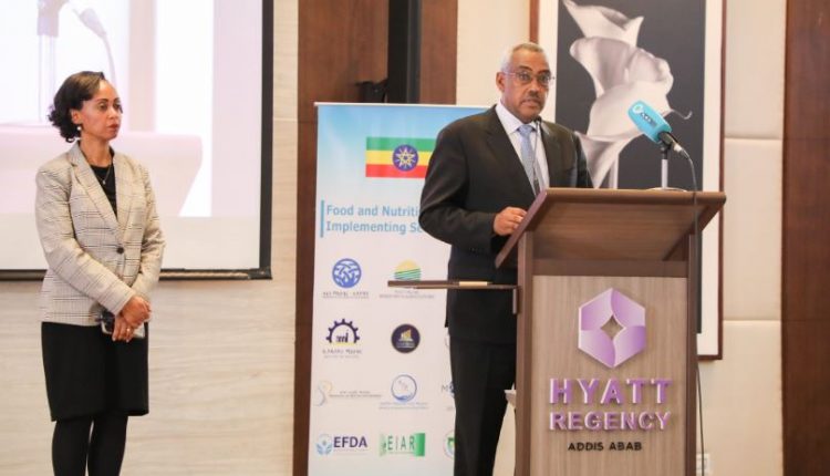 Addis Ababa, March 23, 2023 (FBC) – Deputy Prime Minister and Foreign Affairs Minister Demeke Mekonnen together with Health Minister Lia Tadesse and UNICEF Ethiopia Representative, Abou Kampo launched this morning the Food and Nutrition Strategy (FNS) Baseline Survey Preliminary Report which provides data on food security in Ethiopia.