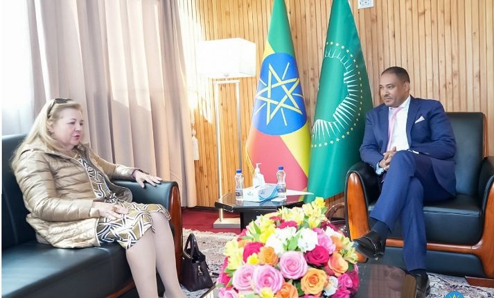 Addis Ababa, June 20, 2023 (FBC) – Ambassador Mesganu Arga, Minister of State for Foreign Affairs of Ethiopia met and discussed with Director and Representative of the United Nations Industrial Development Organization (UNIDO), Aurelia Patrizia Calabrò, at his office today.