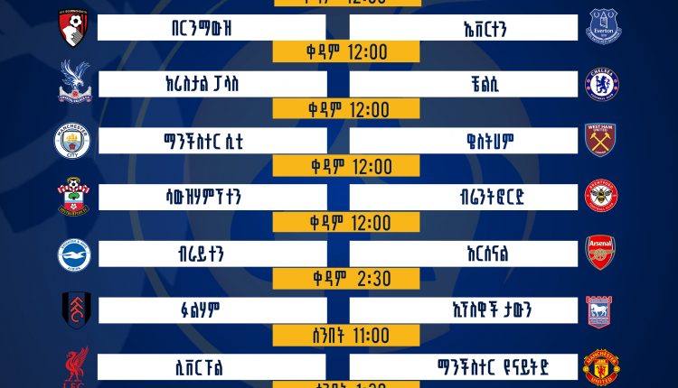 ብራይተን ምስ ኣርሰናል ድማ ሰዓት 2፡30 ምሸት ከምዝራኸባ እቲ ዝወፅአ መርሃ ገብሪ ይሕብር።