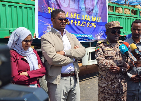 እቲ ሓገዝ፥ ዋና ኣዛዚ እቲ ሓይሊ ኣየር ሌተናል ጄኔራል ይልማ መርዳሳ ርእሰ ምምሕዳር ክልል ኦሮሚያ ኣይተ ሽመልስ ኣብዲሳ ኣብ ዝተረኸቡሉ ንዓበይቲ ዓዲን ሓለፍቲ ስራሕን እቲ ዞባ ኣረኪቦም።