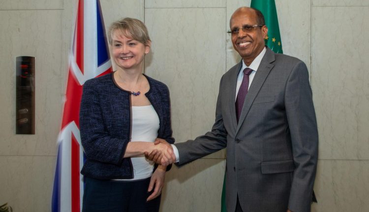 ኣዲስ ኣበባ፣ 25 ጥሪ፣ 2018 (ኤፍ ኤም ሲ) ኣቦ ወንበር ኮሚሽን ሕብረት ኣፍሪካ ማሕሙድ ዓሊ ዩሱፍ ምስ ሚኒስትር ኮመንዌልዝ፣ ልምዓትን ጉዳያት ወፃእን ዩናይትድ ኪንግደም ኩፐር ኢቬት ተዛትዮም።