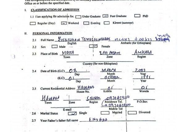 እታ ተምሃሪት ኣብቲ እዋን ኣብ ብሄራዊ ክልላዊ መንግስቲ ኣምሓራ፣ ዞባ ምብራቕ ጎጃም ላዕለዋይ ካልኣይ ብርኪ ቤት ትምህርቲ ሞጣ ፈተና ወሲዳ 392 ውፅኢት ብምምፃእ ኣብ 2013 ዓ.ም ኣብ ዩንቨርስቲ ሃረማያ ከምዝተመደበት እውን ኣብሪሁ።