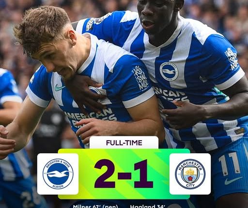 ብራይተን ንኽትዕወት ነበር ተፃዋታይ ማንቸስተር ሲቲ ጀምስ ሚልነር ብፍፁም ቅላዕን ግሩዳን እንተመዝግቡ፤ ብሕታዊት ሸቶ ማንቸስተር ሲቲ ድማ ኤርሊንግ ብራውት ሃላንድ ኣመዝጊቡዋ፡፡