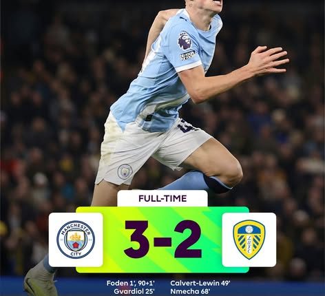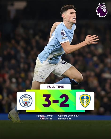 ማንቼስተር ሲቲ ዝተዓወተትለን ሸቶታት ፊል ፎደን (2) ሸቶታትን ግቫርዲዮልን እንተመዝግቡ፤ ናይ ሊድስ ዩናይትድ ድማ ካልቨርት ንሜቻን ኣመዝጊቦምወን፡፡