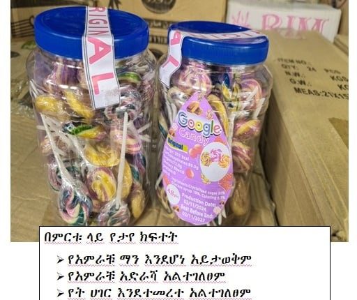 ኣዲስ ኣበባ፣ 9 መስከረም፣ 2017 (ኤፍ ቢ ሲ)ሰለስተ ዘይሕጋዊ ፍሪያታት ከረሜላ ኣብ ዕዳጋ ከይውዕሉ ከምዝተኣገዱ በዓል መዚ ምግብን መድሓኒትን ኢትዮጵያ ኣፍሊጡ።