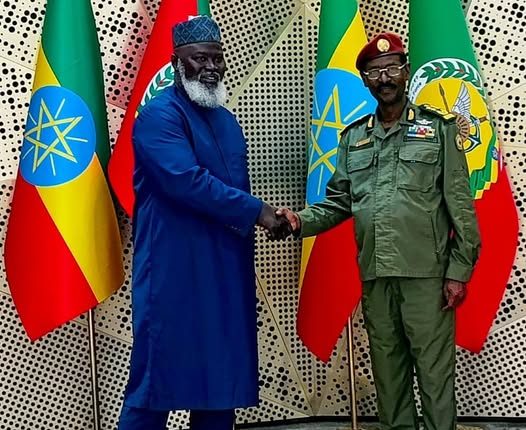 ፊልድ ማርሻል ብርሃኑ ጁላ ምስ ፍሉይ ተወካሊ ኣቦ መንበር ኮሚሽን ሕብረት ኣፍሪካን ዋና ኣዛዚ ልኡኽቶ ድጋፍን ምርግጋእን ሕብረት ኣፍሪካ ኣብ ሶማሊያ (ኣውሶም) ኣምባሳደር ኤል ሃጂ ኢብራሂማ ዲኔ ተዛቲዮም።