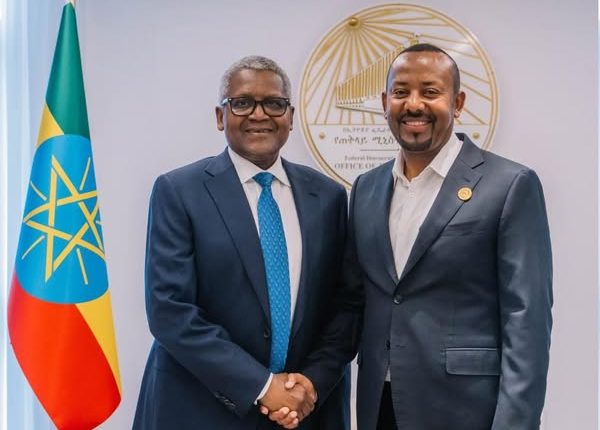 ኣዲስ ኣበባ፣ 8 ለካቲት፣ 2017 (ኤፍ ኤም ሲ)ቀዳማይ ሚኒስትር ኣቢይ ኣሕመድ(ዶ/ር) ምስ ኢንቨስተር ኣሊኮ ዳንጎቴን ቶኒ ኦ. ኢሉሜሉን ዘቲዮም።