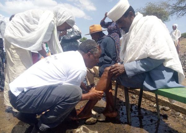 ነቲ በዓል ንምኽባር ካብ ዝተፈላለዩ ከባቢታት ንዝመፅኡ መእመናን ስነ ሰርዓት ሕፅበት እግሪ ይካየድ ኣሎ።