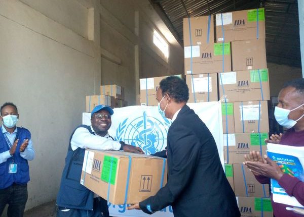 ትካል ጥዕና ዓለም ኣብ ክልል ትግራይ 70 ሜትሪክ ቶን እታዎት ሕክምናን መድሓኒትን ደገፍ ገይሩ
