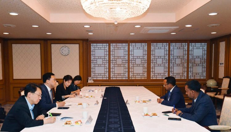 ሚኒስትር ገንዘብ ኣሕመድ ሽዴ ምስ ተተካኢ ምክትል ሚኒስትር ኢኮኖሚን ፋይናንስን ሪፐብሊክ ኮሪያ ኪም ባይንግ-ህዋን ዘቲዮም።