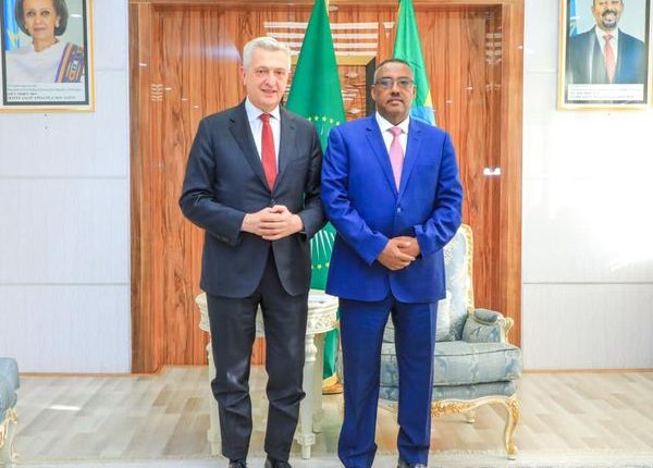 ምክትል ቀዳማ ሚኒስትርን ሚኒስትር ጉዳያት ወፃኢን ደመቀ መኮንን ምስ ላዕለዋይ ኮሚሽነር ኮሚሽን ስደተኛታት ውድብ ሕሕቡራት መንግስታት ፊሊፖ ግራንዲ ተዛቲዮም።