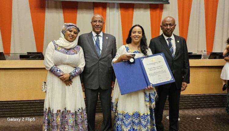 ሚኒስትር ደቂ ኣኒስቲዮን ማሕበራዊ ጉዳይን ኤርጎጌ ተስፋዬ (ዶ/ር) ትማሊ ኣብ ዋና ቤት ዕዮ ውሕመ ኒውዮርክ ተረኪበን እቲ ሽልማት ተረኪበን።