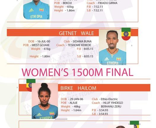 ኣዲስ ኣበባ፣ 16 ነሓሰ፣ 2015 (ኤፍ ቢ ሲ)ኣብ ሃንጋሪ ቡዳፔስት እናተኻየደ ዝርከብ መበል 19 ኣብ ሻምፒዮና ኣትሌቲክስ ዓለም ኢትዮጵያ ትካፈለሎም ክልተ ውድድራት ፍፃመ ሎሚ ምሸት ካከየዱ ኢዮም።