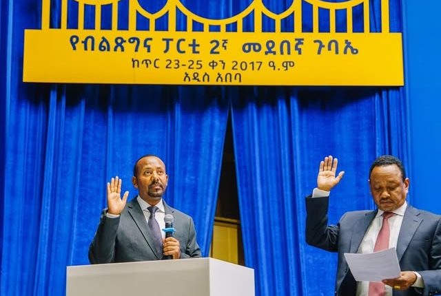 እተን ርእሰ ምምሕዳር ኣብ መልእኽተን ዳግም ፕሬዚዳንት ፓርቲ ብልፅግና ብምዃን ንዝተመረፁ ኣቢይ ኣሕመድ (ዶ/ር) ከምኡ እውን ንምክትል ፕሬዚዳንታት ፓርቲ ብልፅግና ኣይተ ተመስገን ጥሩነህን ኣይተ ኣደም ፋራህን ሰናይ ዘበን ስራሕ ተመኒየን፡፡