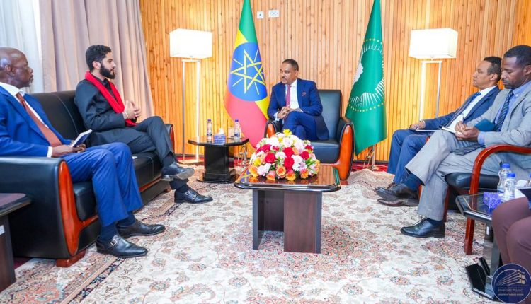 ኣዲስ ኣበባ፣ 8 ሚያዝያ፣ 2016 (ኤፍ ቢ ሲ)ሚኒስትር ዴኤታ ሚኒስቴር ጉዳያት ወፃኢ ኣምባሳደር ምስጋኑ ኣርጋ ምስ ዋና ፀሓፊ ትካል ደቡባዊ ምትሕብባር ሼክ መንሱር ቢን ሙስሰላም ዘቲዮም።