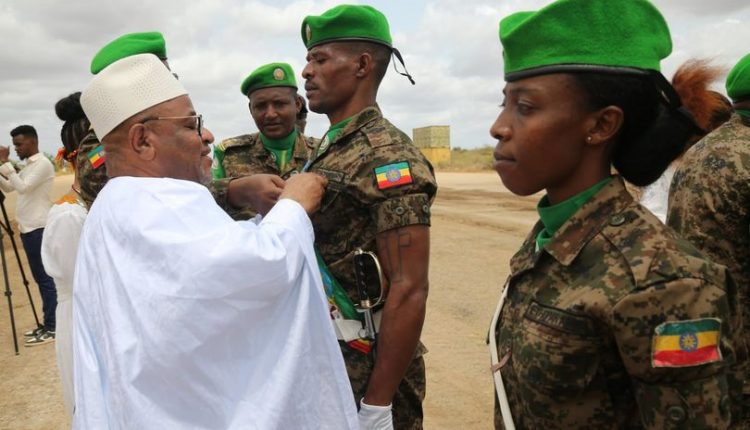 ኣብ ሶማሊያ ባይደዋ ልኡኽ ዓቃቢ ሰላም ብምዃን ግቡኦም ዝፈፀሙ ወተሃደራት ኢትዮጵያ ላዕለዎት ኣመራርሓ ልኡኽ ሽግግር ሕብረት ኣፍሪካ ኣብ ዝተረኸብሉ ስነ ስርዓት ምፍናውን ሽልማት ሜዳይን ተገይሩሎም።