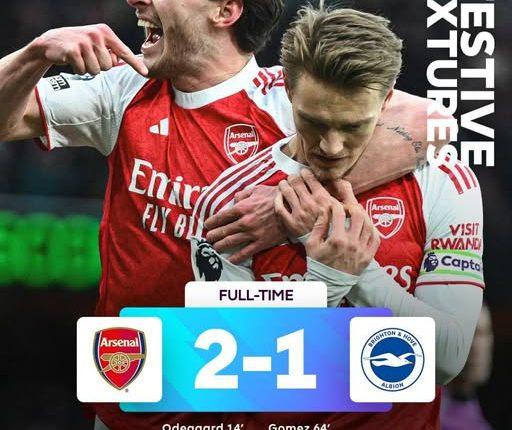 ኣዲስ ኣበባ፣ 18 ታሕሳስ፣ 2018 (ኤፍ ኤም ሲ)ኣብ መበል 18 ሰሙን ፀወታ ፕሪሚየር ሊግ እንግሊዝ ኣርሰናል ንብራይተን 2 ን 1 ብዝኾነ ውፅኢት ብምስዓር ዓወት ኣመዝጊባ፡፡