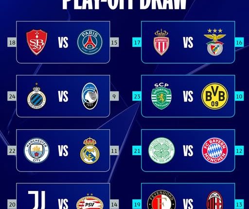 ኣብ ካልኦት ድልድል ፀወታታት ኣውዲቕካ ምሕላፍ÷ ብረስት ምስ ፒኤስጂ፣ ሴልቲክ ምስ ባየር ሙኒክ፣ ጁቬንቱስ ምስ ፒኤስቪ ኣይንድሆቨን፣ ፌይኖርድ ምስ ኤስ ሚላን፣ ስፖርቲንግ ሊዝበን ምስ ቦርሺያ ዶርቱመንድ ተደልዲለን።