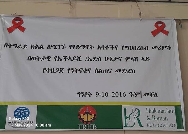 ኣዲስ ኣበባ፣ 9 ግንቦት፣ 2016 (ኤፍ ቢ ሲ)ኣብ ክልል ትግራይ መራሕቲ ሃይማኖትን ዝተፈላለዩ ክፋላት ማሕበረተሰብን ዘሳተፈ ኣብ ምክልኻል ሕማም ኤች ኣይቪ/ኤድስ ዘድሃበ ዘተ ይሳለጥ ኣሎ።