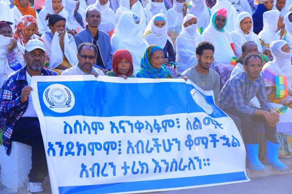 ኣብ ከተማ ጎንደር እናተካየደ ኣብ ዘሎ ሰልፊ ፃውዒት ሰላም ዝተፈላለዩ ክፋላት ሕብረተሰብ ተሳቲፎም።