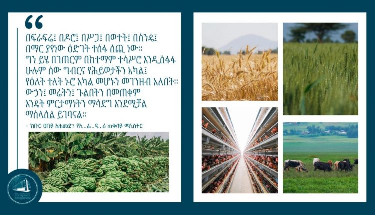 ኣብ ፍራምረ፣ ደርሆ፣ ስጋ፣ ፃባ፣ ስርናይ፣ መዓር ዝረኣናዮ ምዕባለ ተስፋ ዝህብ ኢዩ-ቀዳማይ ሚኒስትር ኣቢይ
