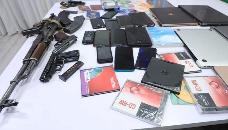 ተጠርጣሪ ታየ ደንደኣ ኣብ ትሕቲ ቁፅፅር ሕጊ ኣብ ዝወዓልሉ እዋን፥ ኣብ መንበሪ ገዝኦም ብመሰረት ዝተገበረ ተፍቲሽ 9 ሞባይላት፣ 4 ላፕቶፕ፣ 3 ኣይፖድ፣ ብዙሕ ፍላሻት፣ 4 ዝተፈላለዩ ታርጋታት መኪናን ዝተፈላለዩ መሳሕቲታት ኤሌክትሮኒክስን፣ ክላሽንኮቭ ጠመንጃን ሽጉጣትን ምስ ጠያይቶም፣ ናይ ኦነግ ሸኔ ኣርማታትን በዝተፈላለዩ ውልቀሰባት ስም ዝተሰናድኡ ታሴራታት ኦነግ ሸኔ፣ ሰነዳትን መዘክራትን ከመዝተረኸበ እቲ መግለፂ ኣረጋጊፁ።