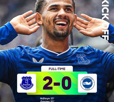 ኣዲስ ኣበባ፣ 18 ነሓሰ፣ 2017 (ኤፍ ኤም ሲ)ኣብ 2ይ ሰሙን ፀወታ ፕሪሚየር ሊግ እንግሊዝ ኤቨርተን ንብራይተን 2 ን 0 ብዝኾነ ውፅኢት ብምስዓር ዓወት ኣመዝጊባ፡፡