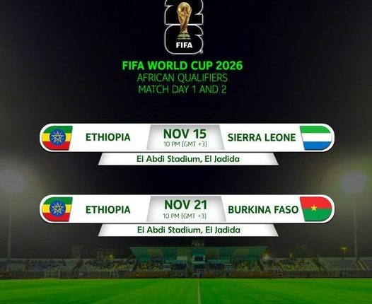 ኣዲስ ኣበባ ፣ 23 ጥቅምቲ፣ 2016 (ኤፍ ቢ ሲ)ሃገራዊት ጋንታ ኢትዮጵያ (ዋልያታት) ኣብ መፃረዪ ፀወታ ፅዋዕ ዓለም ዝገብሩዎም ክልተ ናይ ሜዳ ፀወታኣ ኣብ ሞሮኮ ከምተካይድ ተገሊፁ።