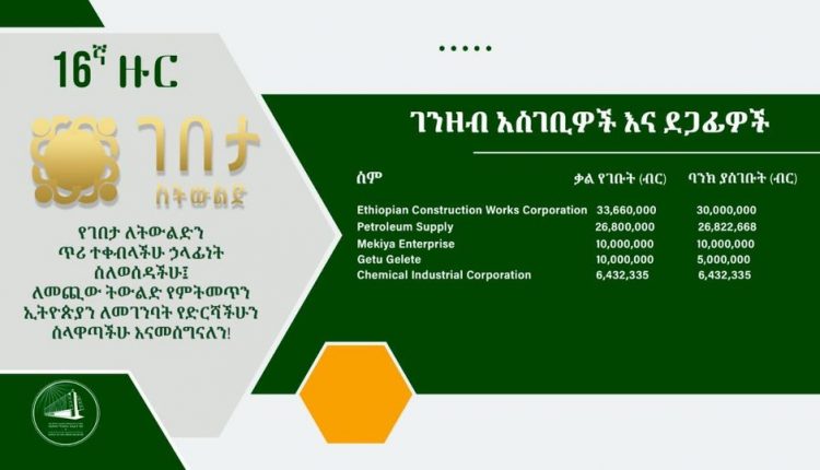 እተን ትካላት ኣብ መበል 16 ዙር ልዕሊ 76 ሚሊየን ብር ደገፍ ከምዝገበራ ኣብ ቤት ፅሕፈት ቀዳማይ ሚኒስትር ዝረኸብናዮ ሓበሬታ የረድእ።