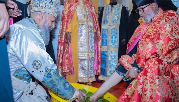 ብመሰረት እዚ እቲ ስነ ስርዓት ኣብ መንበረ ፀባኦት ቅድስት ስላሴ ካቴድራል ኣዲስ ኣበባ ኣብ ዝተሳለጠሉ እዋን፥ ፓትርያርክ ኦርቶዶክስ ተዋህዶ ቤተ ክርስቲያን ኢትዮጵያ ብፁእ ወቅዱስ አቡነ ማትያስ ናይ ብፁኣን ጳጳሳት፣ ጳጳሳት ናይ ቆሞሳት፣ ካህናት ናይ ምእመናት እግሪ ብምሕፃብ ኣርኣያ ኢየሱስ ክርስቶስ ብምስዓብ ነቲ ስርዓት ፈፂመምዎ።